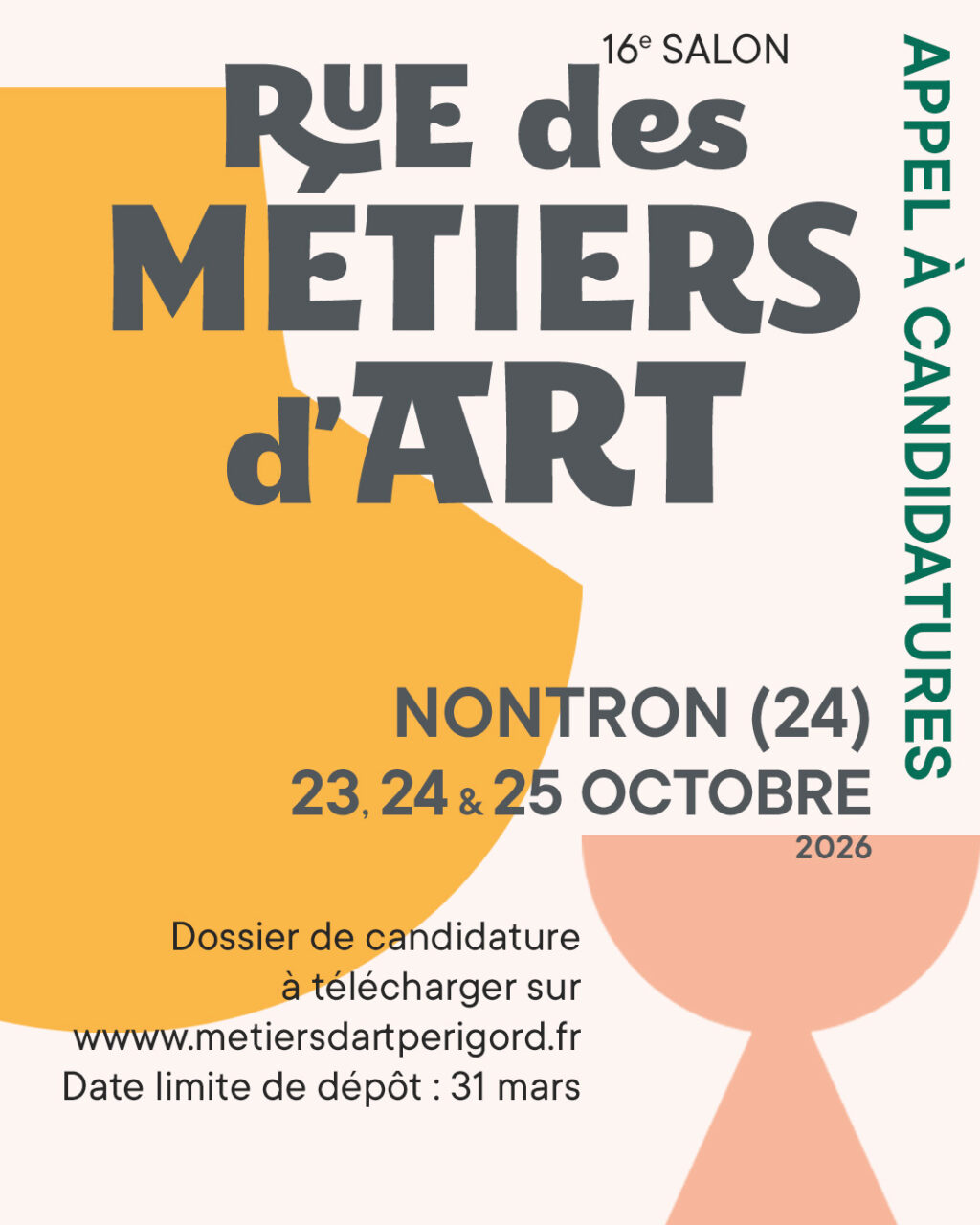 Dossier de candidature : https://metiersdartperigord.fr/appel-a-candidatures-salon-nontron-2026