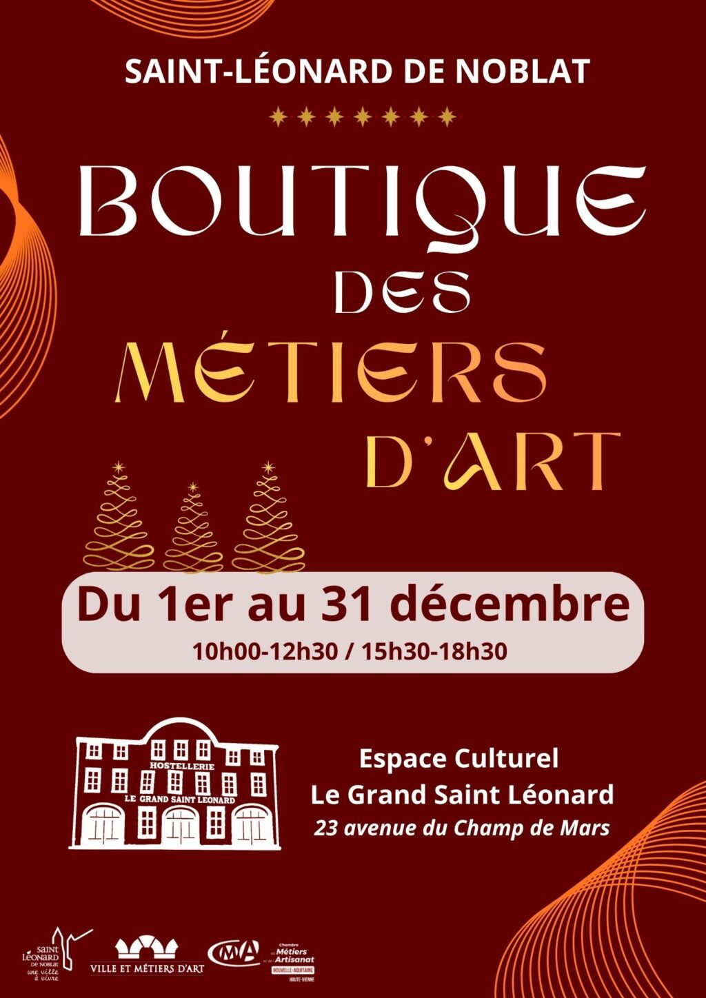 Exposition-vente des artisans d’art de la magnifique cité qu’est Saint Léonard de Noblat. Idées cadeaux et vitrines des savoir-faire locaux dans l’ambiance féérique et magique d’un centre-ville médiéval aux couleurs de Noël. Les artisans d’art seront présents pour dévoiler leurs créations et l’excellence de leur savoir-faire.