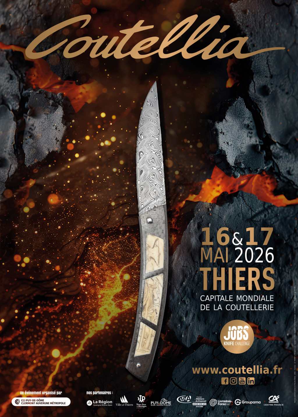 Les 16 et 17 mai 2026, la ville de Thiers, capitale mondiale de la coutellerie, accueille la 35e édition de Coutellia, rendez-vous incontournable dédié à l’univers du couteau d’art et de tradition.