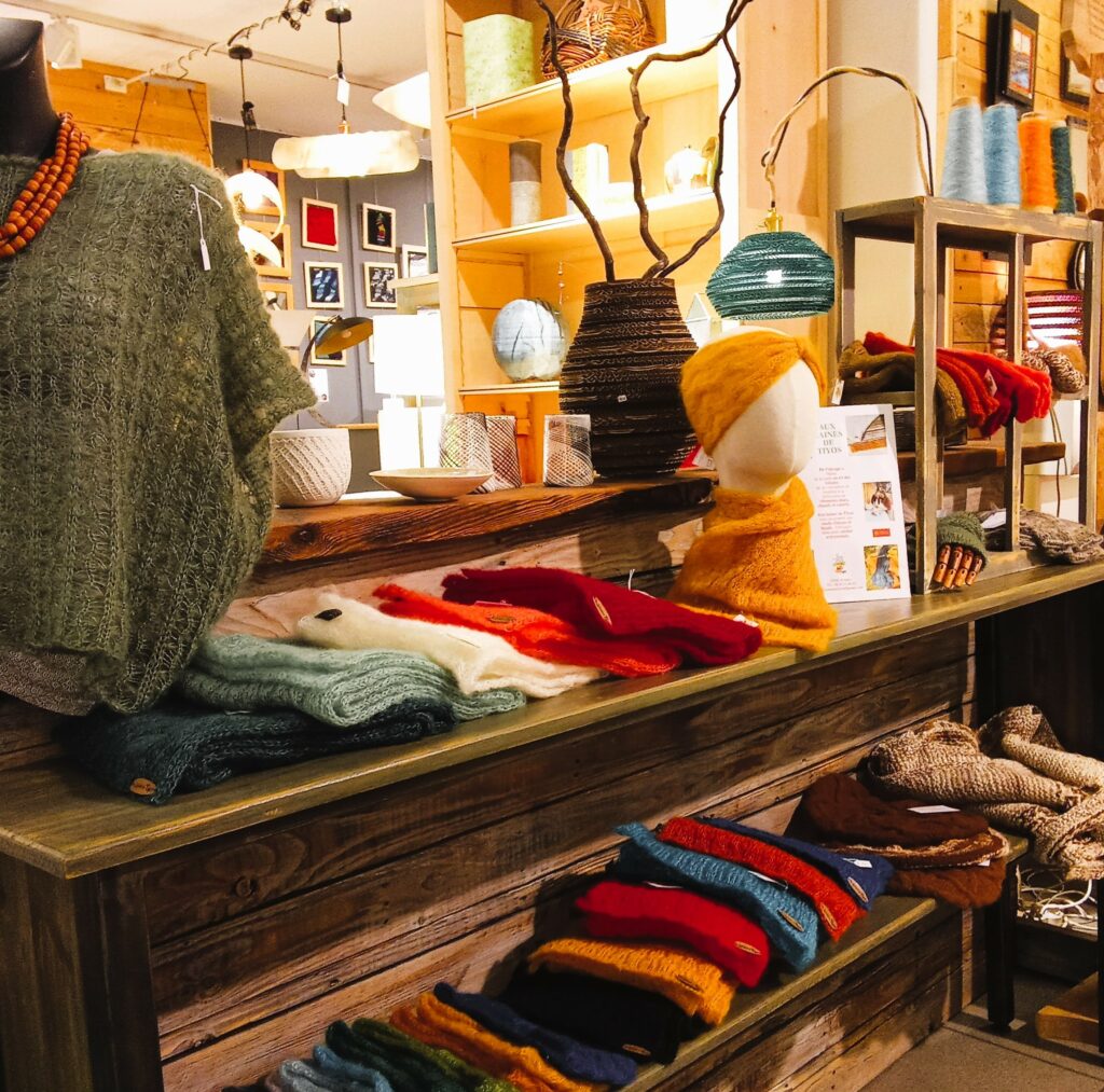 Cette production de laines se fait dans le plus grand respect des bêtes et de l’environnement. Après avoir obtenu le fil, ils confectionnent au crochet, aux aiguilles ou au métier à tricoter, des ouvrages uniques. Écharpes, bonnets, ponchos, étoles, tours de cou, gants… Aux laines de Tiyos vous propose des créations élégantes et douillettes pour accompagner l’hiver.