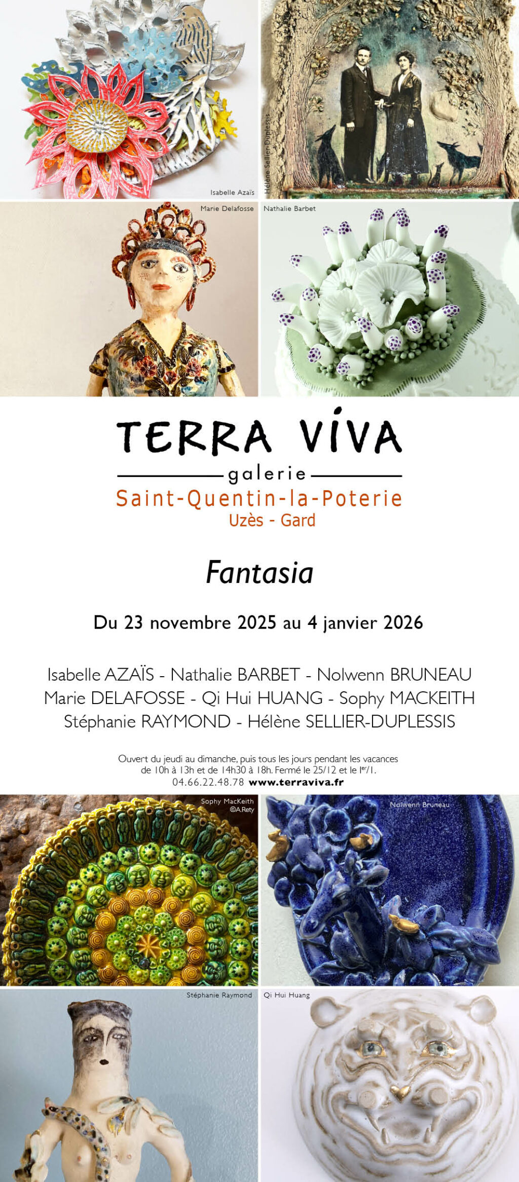 Lieu : Galerie Terra Viva – 14 rue de la Fontaine – 30700 Saint-Quentin-la-Poterie