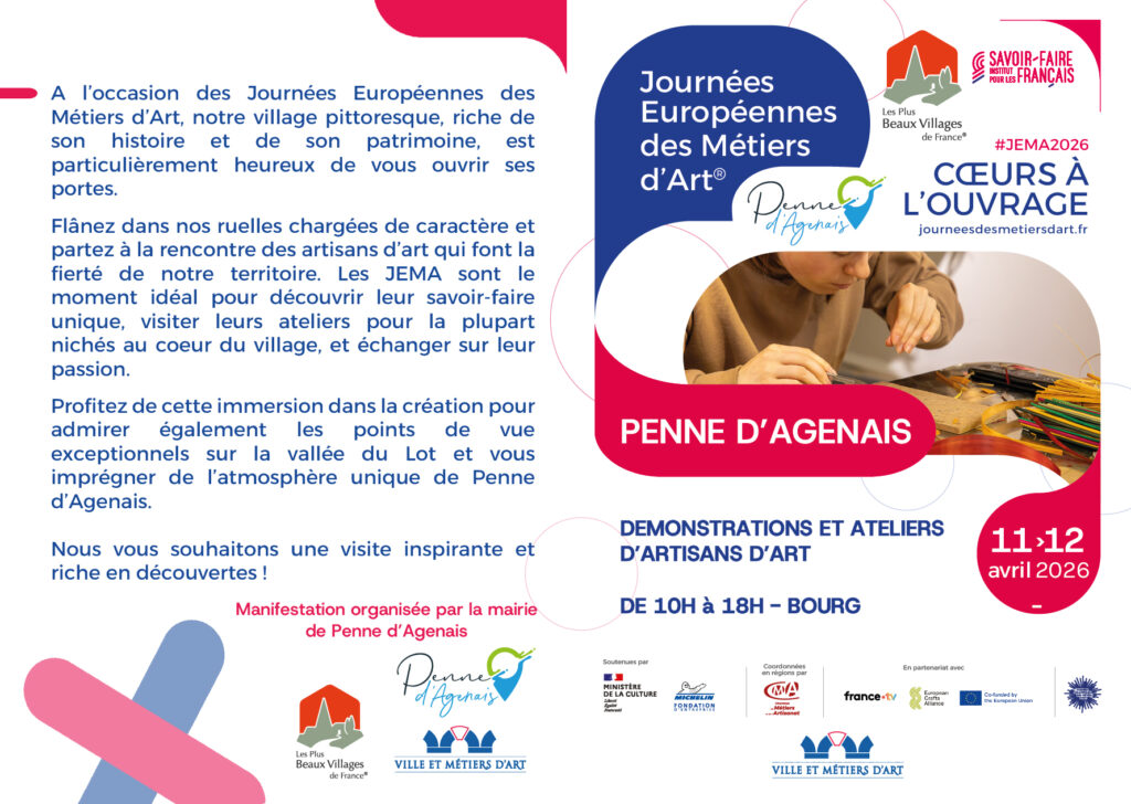 À l’occasion des Journées Européennes des Métiers d’Art, le village de Penne-d’Agenais, riche de son histoire et de son patrimoine, vous ouvre ses portes pour un week-end placé sous le signe de la création et des savoir-faire.