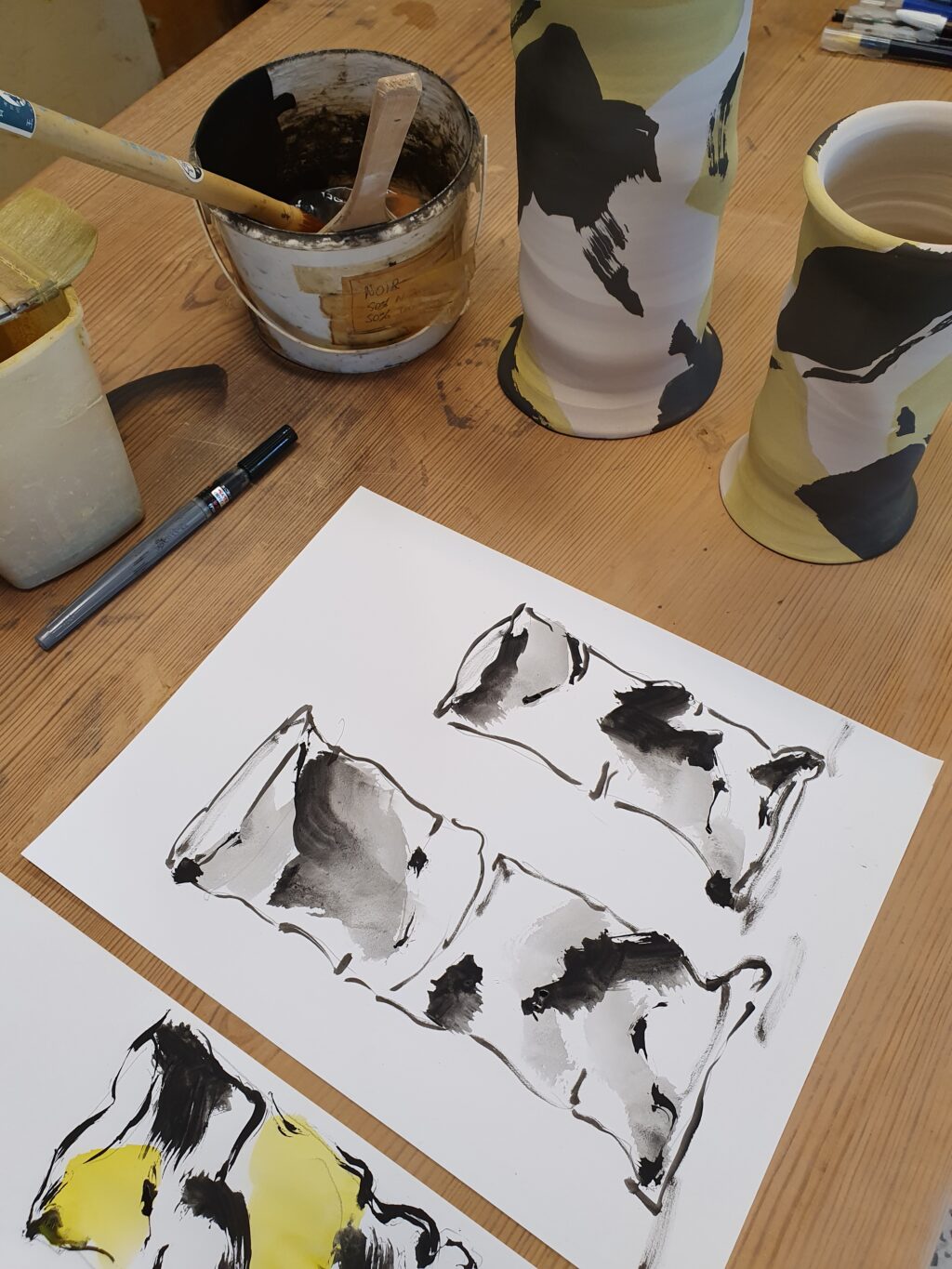 Réalisez un décor inspiré sur l’un des contenants céramique réalisés par nos potières et assistez à l’émaillage, l’enfournement et l’enfumage de votre création.