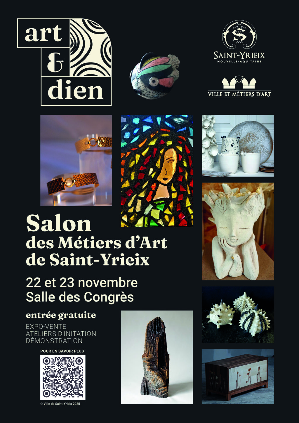 La commune de Saint Yrieix la Perche organise depuis de nombreuses années le Salon Art&dien en lien avec son label Ville et Métiers d’Art, réservé aux professionnels des métiers de l’artisanat d’art et qui vise à mettre en lumière des créations uniques et singulières. Terre de savoir-faire, notre cité arédienne est connue en France pour être le berceau du kaolin au milieu du 18ème siècle. Les métiers d’art sont ainsi une des pierres angulaires de la commune.
